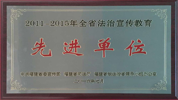 公司荣获“2011-2015年全省法治宣传教育先进单位”荣誉称号