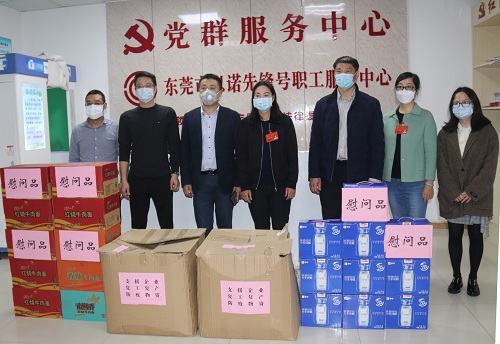 东莞市大朗镇人大、总工会等单位向以诺通讯赠送防疫保障物资
