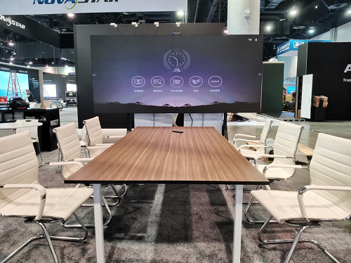 受全球疫情的持续影响,远程办公、视频会议、在线学习等概念已深深渗入人们的工作、学习与生活之中,全球市场对交互显示产品的需求持续旺盛。本次展会上,迈锐光电智慧会议一体机凭借多功能智能集成一体化设计理念赚足了眼球。产品内置顶级扬声设备和安卓智能系统,集高清显示、无线投屏、远程会议等多功能于一体,投屏时支持四分屏同时显示,数据对比清晰直观,让开会演示与信息交流的体验更逼真,“刷新”了参展观众对LED显示屏的认知。