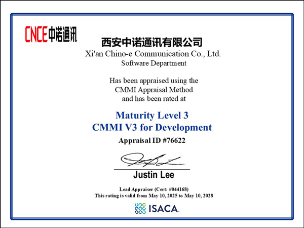 CMMI认证被誉为全球软件行业的“黄金标准”,是全球软件与系统开发领域最具权威性的能力成熟度评估体系。此次成功通过CMMI3级认证,表明西安中诺已具备规范化、标准化和持续优化的研发体系,将为客户提供更加高效、稳定、可持续的数字化解决方案,为高品质交付提供有力保障。