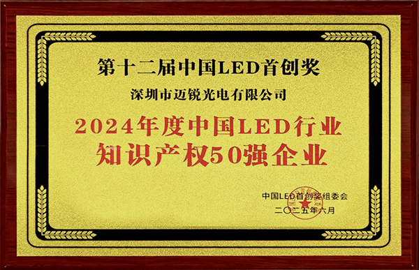 2025年6月,在第十二届中国LED首创奖颁奖典礼上,乐鱼网页版登录入口成员企业迈锐光电成功入选“2024年度中国LED行业知识产权50强”,以突出技术创新力与知识产权管理能力赢得行业高度认可。